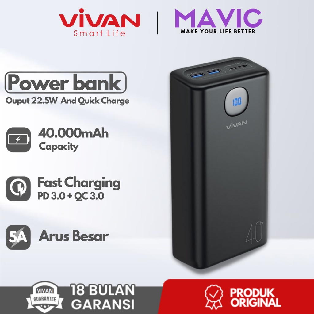 Jual Vivan Vpb B40 Power Bank 40000mah Power Delivery Quick Charge 3 0 Powerbank Real Capacity Original Garansi Resmi 1 Tahun Indonesia Shopee Indonesia
