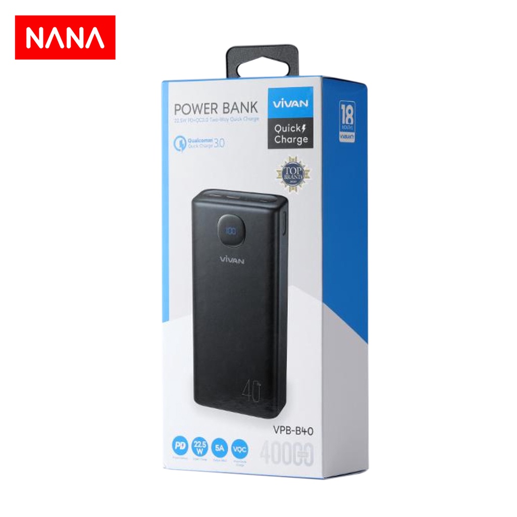 Jual Nana Vivan 40000 Mah Powerbank Vpb B40 Vooc Pd Quick Charge 22 5w Indonesia Shopee Indonesia